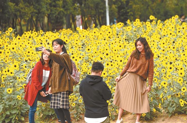 市民中心南廣場(chǎng)向日葵花海成了市民打卡地。