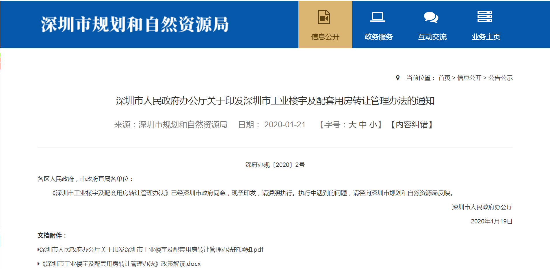見圳客戶端·深圳新聞網(wǎng)2020年1月21日訊(見圳客戶端、深圳新聞網(wǎng)記者潘潤華)為進一步減輕企業(yè)負擔,改善營商環(huán)境,推動產(chǎn)業(yè)轉(zhuǎn)型升級,深圳出新政取消工業(yè)樓宇及配套用房轉(zhuǎn)讓增值收益、完善轉(zhuǎn)讓規(guī)則!1月21日,記者從深圳市規(guī)劃和自然資源局獲悉,《深圳市工業(yè)樓宇及配套用房轉(zhuǎn)讓管理辦法》(以下簡稱《管理辦法》)經(jīng)深圳市政府同意正式印發(fā)?!豆芾磙k法》規(guī)范了工業(yè)樓宇及工業(yè)配套用房受讓人資格條件、強化了產(chǎn)業(yè)監(jiān)管、設定了過渡政策。據(jù)悉,《管理辦法》自2月1日起施行,有效期5年。
