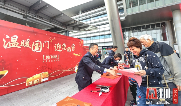 見圳客戶端·深圳新聞網(wǎng)2020年1月22日訊(見圳客戶端、深圳新聞網(wǎng) 記者 張玲 通訊員 劉姝夢)巍巍國門彰顯大國風(fēng)范,涓涓暖流展現(xiàn)為民情懷。不辭風(fēng)雪的歸鄉(xiāng)路上,國門——就是您的第一道家門。根據(jù)國家移民管理局統(tǒng)一部署,2020年1月17日至2月1日,深圳邊檢總站積極開展“溫暖國門迎您回家”主題活動,在各口岸出入境現(xiàn)場設(shè)置“國門驛站”,擺放“國門同框”合影墻、“家國情懷”留言板,點綴體現(xiàn)中國年的傳統(tǒng)文化元素表達祝愿,著力提升廣大出入境人員特別是歸國返鄉(xiāng)人員的獲得感、幸福感和歸屬感,各口岸沉浸在濃濃的年味里。