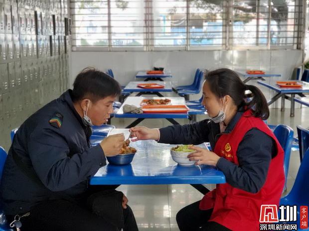 顏雁鳴和劉文菊在車隊食堂吃午飯