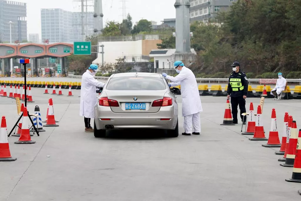 醫(yī)務(wù)人員對(duì)入深車輛乘員進(jìn)行二次測(cè)溫。