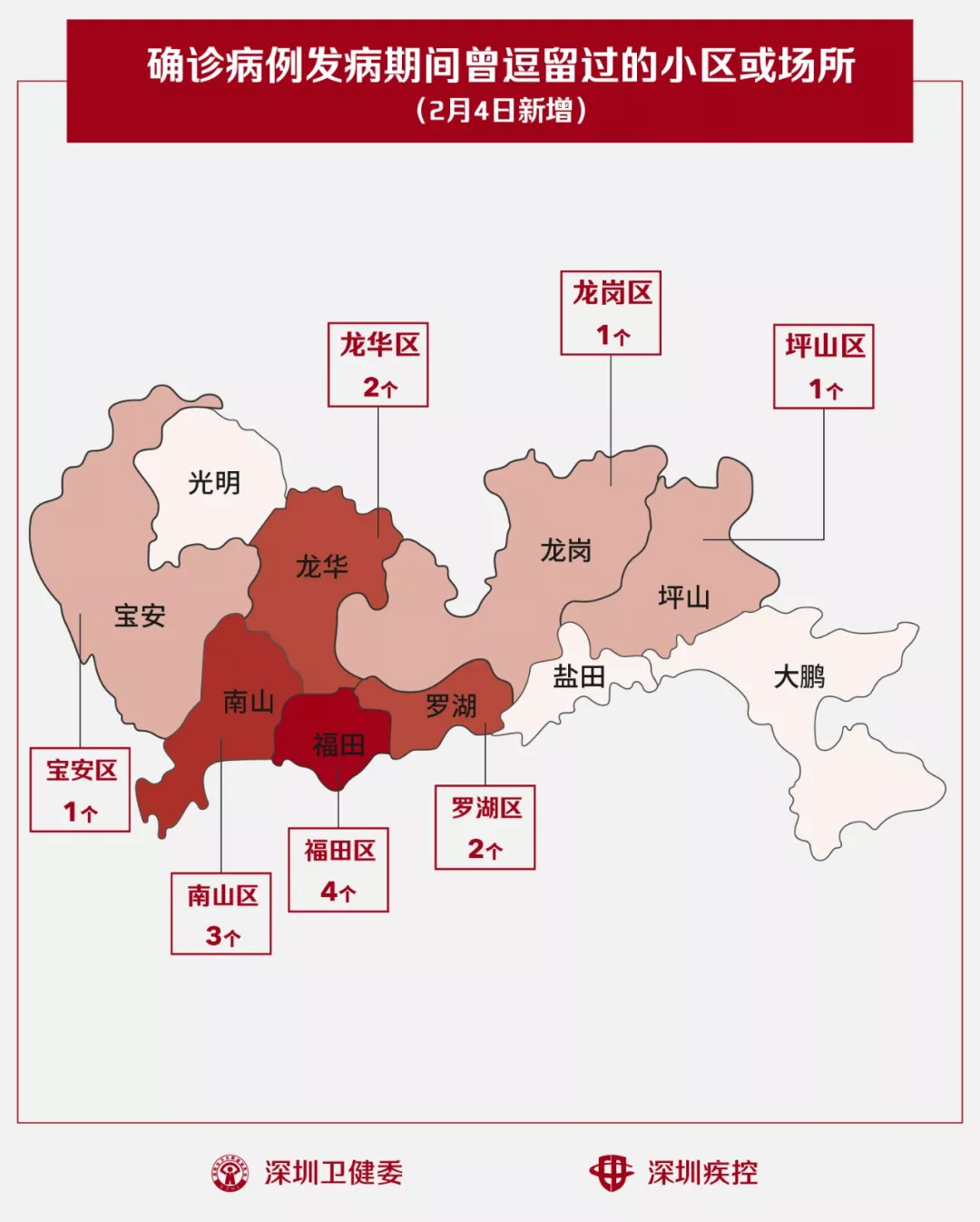 2月4日,疾控專業(yè)人員通過最新的流行病學調查確認,深圳新增14個小區(qū)(場所),有新確診的病人在出現(xiàn)病征期間曾經(jīng)逗留。
