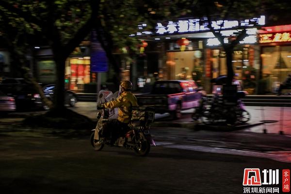 夜幕之下,路上只見外賣、快遞小哥在奔忙。