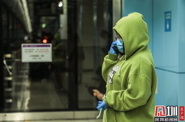 地鐵:地鐵上一位市民“全副武裝”,不僅戴上了口罩,雙手也戴上了手套。