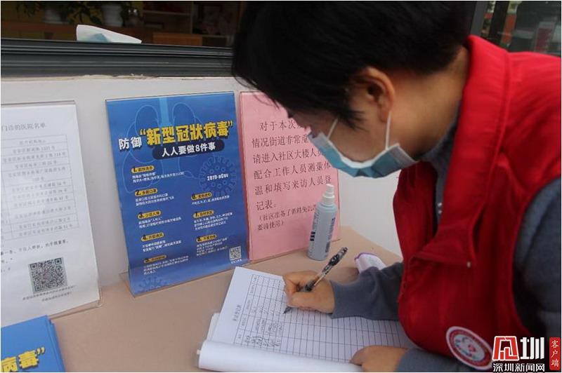“你看,這是我們社區(qū)目前報到人員的名單?!眳躯愊蛴浾哒故玖松鐓^(qū)外來人員報到表,里邊清楚地記錄了每家每戶的人員姓名、籍貫、春節(jié)外出地點(diǎn)、健康情況等信息。每天下午2點(diǎn)開始,社區(qū)工作站的義工們就開始核查回深人員的登記情況,并匯總給工作站辦公室。