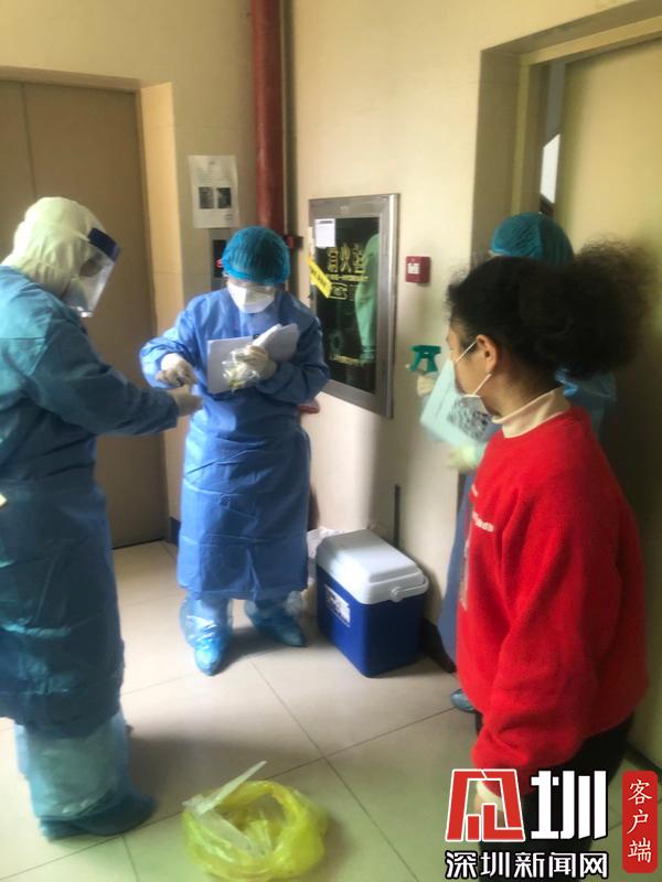 2月10日中午12點(diǎn),隨著鄧啟文院長(zhǎng)的一聲令下,30個(gè)采樣流調(diào)小組帶著采樣物資全副武裝出發(fā)。他們來到相關(guān)社區(qū)后,在社區(qū)工作人員的帶領(lǐng)下,來到居家隔離人員的家里,采樣人員按照相關(guān)指引對(duì)居家隔離人員進(jìn)行了咽拭子采樣,流調(diào)人員負(fù)責(zé)流行病學(xué)調(diào)查,詳細(xì)了解返深人員在湖北的旅居史、密切接觸者等情況,并叮囑他們居家醫(yī)學(xué)觀察14天,同時(shí)做好個(gè)人防護(hù)和保持個(gè)人衛(wèi)生,采樣流調(diào)工作得到了居家隔離人員的支持和點(diǎn)贊。據(jù)統(tǒng)計(jì),第一天,采樣流調(diào)小組就完成670人的采樣和流調(diào)工作。