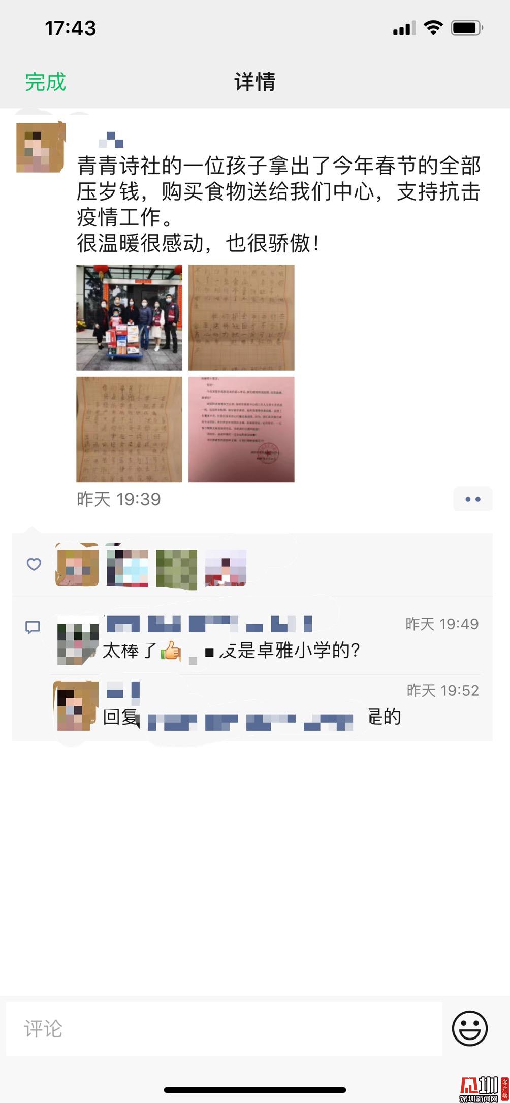 疾控中心工作人員、青青詩(shī)社王老師朋友圈截圖
