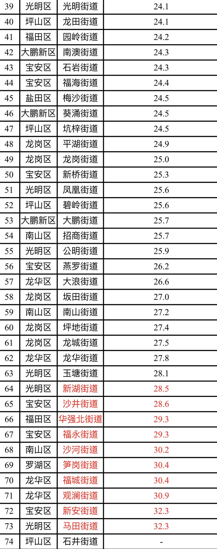 見圳客戶端·深圳新聞網(wǎng)2020年2月12日訊(見圳客戶端、深圳新聞網(wǎng)記者 陳婕)2020年1月,深圳市74個街道PM2.5濃度在18.4-32.3微克/立方米之間,均值為24.3微克/立方米。排名前十的是:橫崗、黃貝、鹽田、海山、桃源、梅林、南湖、福田、東門和翠竹等街道,排名倒數(shù)前十的是:馬田、新安、觀瀾、福城、筍崗、沙河、福永、華強北、沙井和新湖等街道。