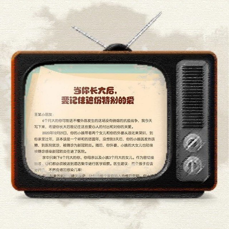 寶安區(qū)新安街道海富社區(qū)一名6個月大的孩子,因家里有人被確診為新型冠狀病毒感染的肺炎,被迫與家人分開進行醫(yī)學(xué)觀察。海富社區(qū)工作人員們對其悉心照顧,如今孩子已經(jīng)平安度過了14天的居家觀察期。海富社區(qū)特意為孩子留下一封情真意切的書信,希望孩子長大后,能記住這段特殊時期收獲的特殊的愛。