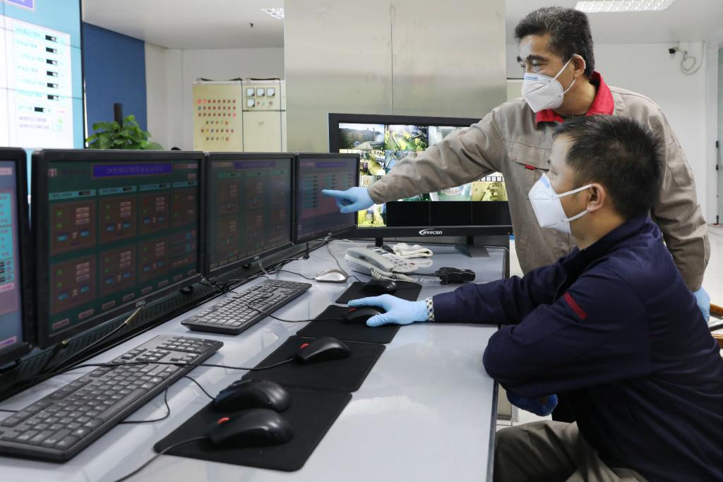 ▲工作人員通過實時影像監(jiān)測醫(yī)療廢物處置過程。