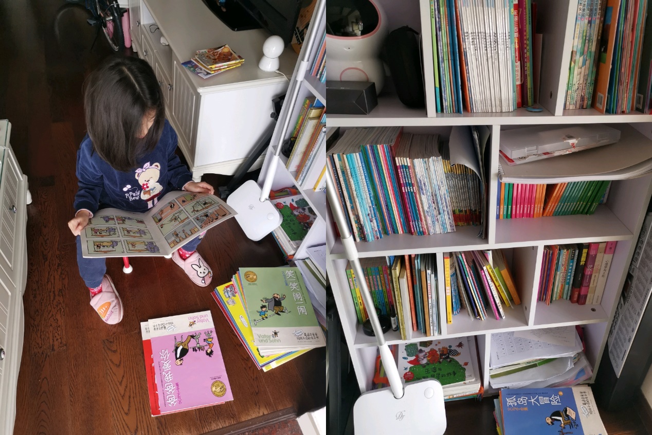 (圖二:看書,她有自己開放式的小書柜,有時候是我們陪讀)