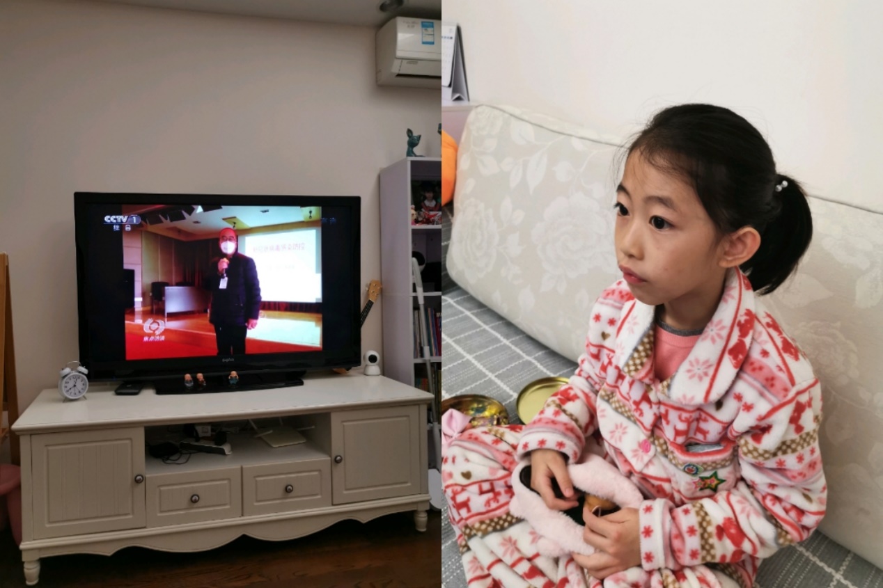 晚上固定時間一家人看新聞和焦點訪談,有時候有些好的文章,我們會讀給她聽。