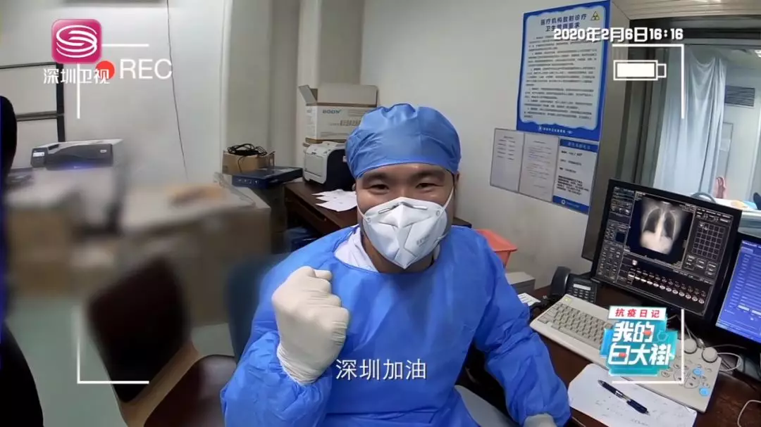 即便戴著口罩,還是能從她的語氣中聽到洋溢著的幸福感。刷過醫(yī)院醫(yī)生專有的門禁卡,袁曉珊進(jìn)入老公的辦公區(qū)域。她老公叫黃茗勇,是深圳市第三人民醫(yī)院放射科技師。見到他時(shí),1米7左右的黃茗勇身上穿著藍(lán)色醫(yī)用防護(hù)服,臉上戴著白色醫(yī)用口罩。“這就是我老公。”袁曉珊一眼就認(rèn)出來了。