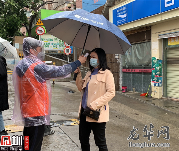 2月14日上午,當(dāng)記者在大浪街道龍勝社區(qū)黨員先鋒崗見到何耀良和孫杰時(shí),他們身上的衣服還在隱約冒著濕氣。原來為了避免下雨時(shí)市民排隊(duì)檢查出入證淋濕了身子,他們冒雨在各測溫點(diǎn)加搭帳篷,顧不上給自己防雨,一會(huì)兒便全身濕透了?!坝赀@么大,帳篷必須要盡快搭好,那時(shí)候滿心想著都是怎么才能更快一點(diǎn),根本顧不上躲雨啦!”孫杰爽朗一笑道。