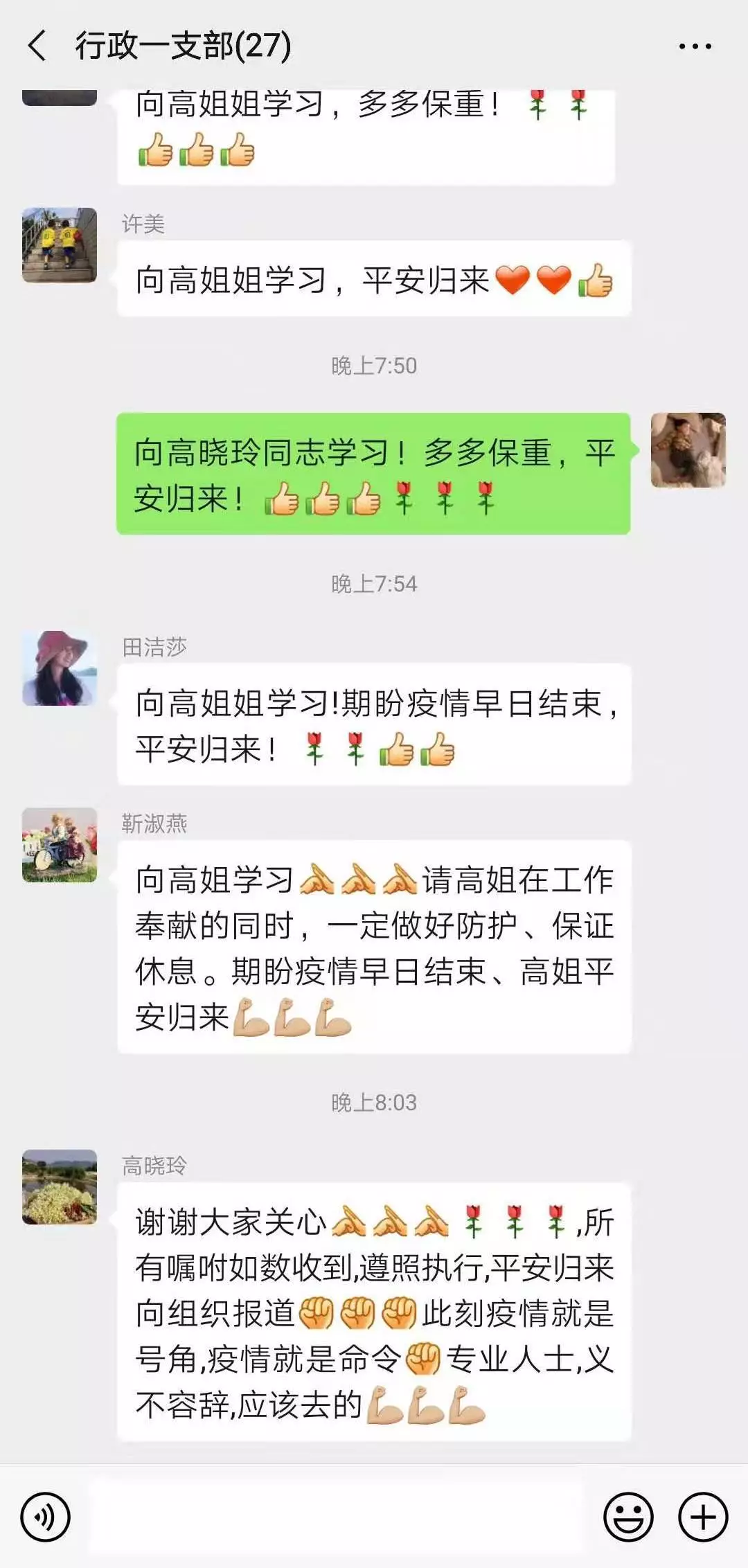 晚上,在黨支部的微信群里,作為支部委員的高曉玲向組織堅定承諾:“此刻疫情就是號角,疫情就是命令,專業(yè)人士,義不容辭,應該去的!”