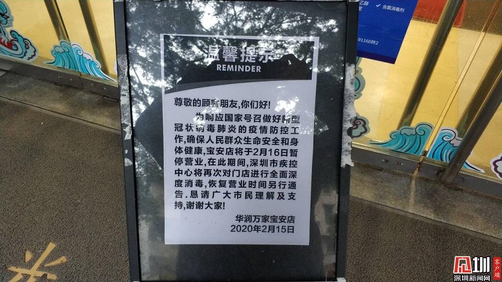 華潤(rùn)萬家寶安店門口張貼的溫馨提示。