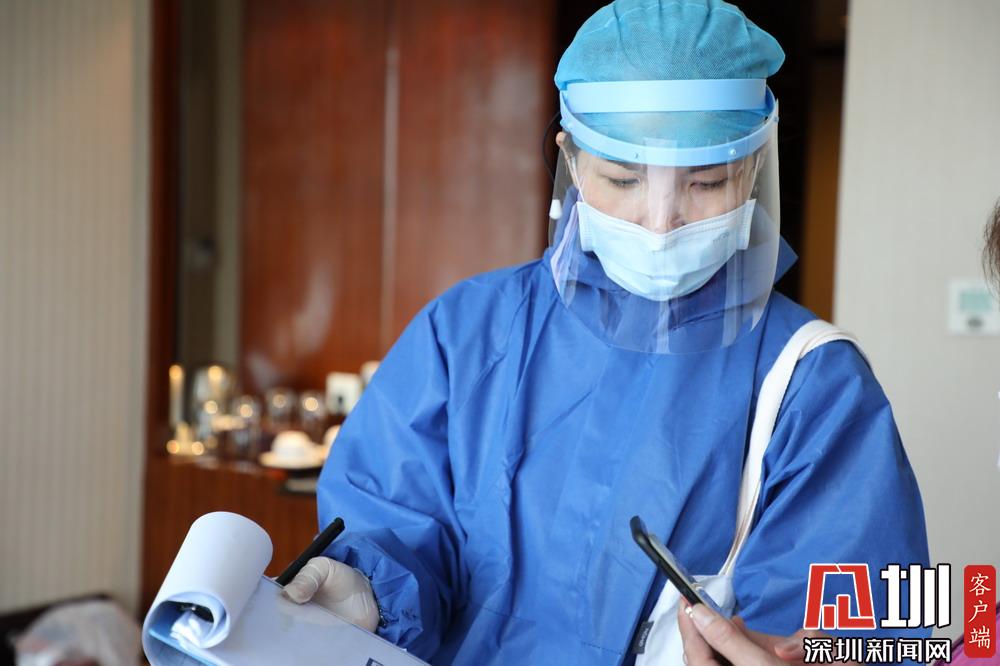 “這個(gè)檢測真的很好,非常感謝你們?!鼻耙惶靹倧暮鼻G州返深的劉小姐感激地對醫(yī)護(hù)人員說,“畢竟我是從疫區(qū)過來的,做了核酸檢測我自己安心,社區(qū)鄰居和公司同事也都可以放心了。”一上午,采樣流調(diào)小分隊(duì)為酒店新入住的20名集中隔離醫(yī)學(xué)觀察者做了核酸咽拭子采樣和流行病學(xué)調(diào)查。