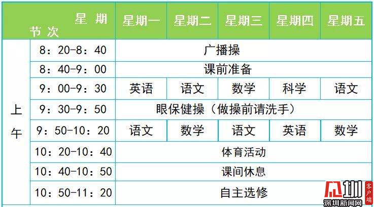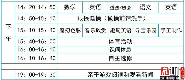 網(wǎng)課的課程表和正式上課的課程表還是有所不同的。比如福田區(qū)景蓮小學(xué)的課程表是全校統(tǒng)一,上午下午各有2節(jié)課,每節(jié)40分鐘(老師講課15分鐘,學(xué)生自己線下做課堂練習(xí)25分鐘)。該校二年級(jí)今天上的科學(xué)課和音樂(lè)課就緊扣新冠肺炎疫情防控,科學(xué)課用動(dòng)畫視頻講解新冠病毒的原理,并請(qǐng)小朋友自己畫一幅新冠病毒的圖;音樂(lè)課則是播放教唱《加油歌》《奉獻(xiàn)》,向疫情防控的逆行勇士致敬。