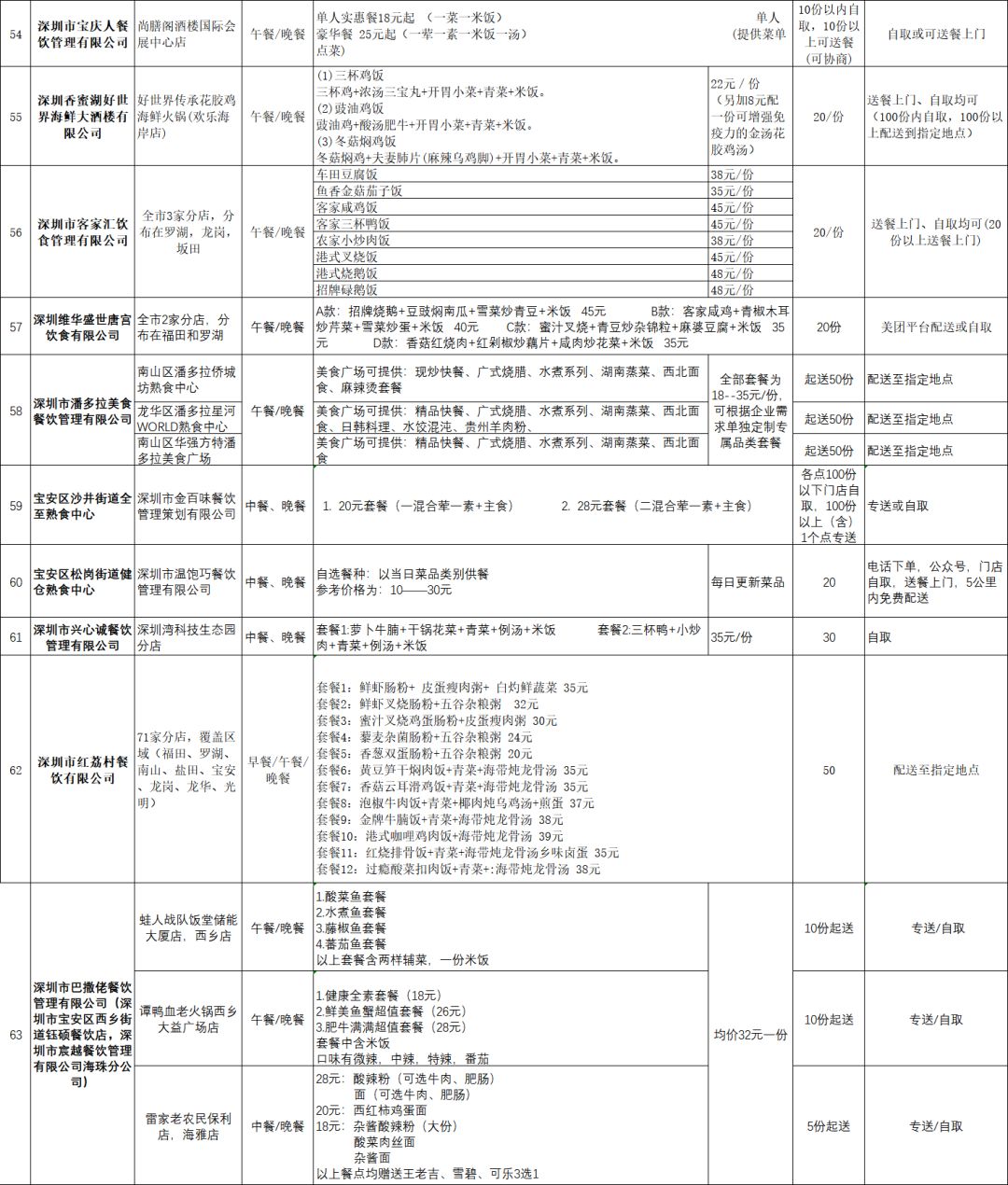 4、訂餐單位可以采取專人自取、餐飲單位送餐、網(wǎng)絡(luò)訂餐平臺(tái)配送服務(wù)等方式。