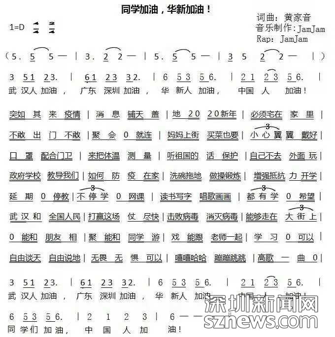 福田區(qū)教科院在線教學(xué)巡查員徐奇志老師說:“華新小學(xué)以一曲本校音樂老師黃家音老師作詞作曲的《同學(xué)加油華新加油》開啟了開學(xué)第一課,表達(dá)了華新小學(xué)全體師生對武漢的祝福,對自由呼吸新鮮空氣和校園生活的向往,還有師生們期待勝利曙光的決心?!?/p>