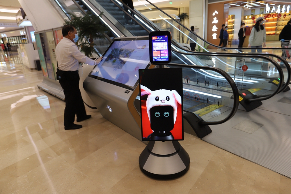 走在商場中,隨時(shí)可以看到保潔人員在消毒清潔。在商場一樓中庭導(dǎo)購屏和導(dǎo)購機(jī)器人處,保潔人員用消毒水反復(fù)擦拭屏幕。據(jù)悉,商場每小時(shí)巡回對(duì)扶梯、電梯、衛(wèi)生間、消防通道、導(dǎo)視屏、扶手欄桿、休閑椅、門把手、垃圾房、垃圾桶等地進(jìn)行消毒。