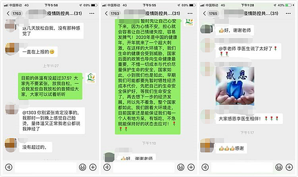 通過(guò)微信群等線(xiàn)上形式,做好重點(diǎn)人群的心理服務(wù)工作。一是進(jìn)入居家隔離群,向群眾提供線(xiàn)上即時(shí)服務(wù)。從心理咨詢(xún)師進(jìn)入到居家隔離群中的反饋來(lái)看,居家隔離的人群有因隔離時(shí)間太久,情緒煩躁異常;也有擔(dān)心呆在家里無(wú)收入,房租及公司虧錢(qián)等而出現(xiàn)身心不適;有因孩子出現(xiàn)發(fā)燒癥狀需就醫(yī)產(chǎn)生緊張不安的;也有因鄰居發(fā)出躁聲影響睡眠而煩躁不安的。面對(duì)這些情緒,咨詢(xún)師及時(shí)給予理解、共情、支持和接納,使相關(guān)心理問(wèn)題得到及時(shí)緩解。二是將心理咨詢(xún)熱線(xiàn)通過(guò)各工作群轉(zhuǎn)達(dá)最需要服務(wù)人群中。及時(shí)把服務(wù)熱線(xiàn)擴(kuò)散到社區(qū)抗疫工作群、網(wǎng)格員群、居家隔離群等潛在服務(wù)人群中,隨時(shí)為群眾提供心理支持服務(wù)。三是創(chuàng)立熱線(xiàn)小程序,方便群眾隨時(shí)聯(lián)系咨詢(xún)。