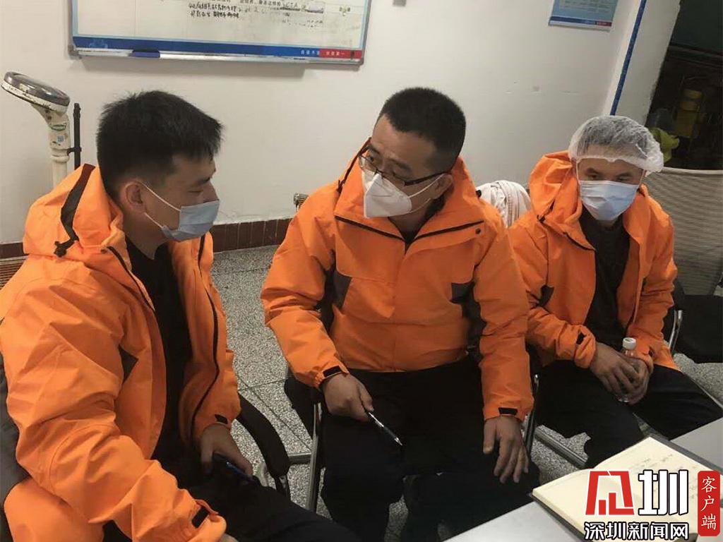 醫(yī)療隊(duì)成員蔡軍、張健發(fā)、陳釗軍(從左到右)在探討工作情況
