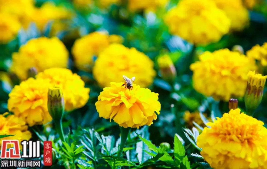 百花爭(zhēng)艷的蓮花山公園,惹來了忙著采蜜的蜜蜂。