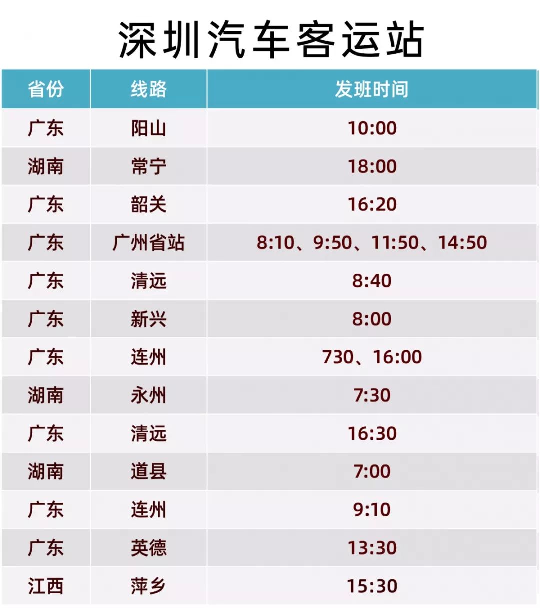 包括深圳汽車客運站(銀湖站)、龍崗長途汽車客運站、寶安汽車客運站、蛇口汽車客運站、沙井汽車站、大鵬汽車客運站。