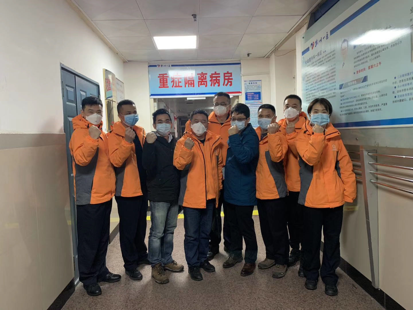 醫(yī)生團(tuán)隊(duì)共有7個(gè)人,我也將他們送到重癥隔離病區(qū)門(mén)口。我不能進(jìn)去,就和大家一起合了個(gè)影,這是我這一輩子都不能忘記的一次合影,我們每個(gè)人豎拳的手勢(shì)都那么有力,每個(gè)人的眼神都那么堅(jiān)定!連最瘦弱的女醫(yī)生單雪也看起來(lái)充滿(mǎn)力量。