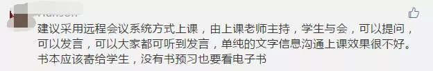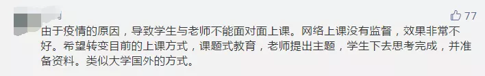 在疫情期間,如何做好“停課不停學(xué)”,許多參與者也給出自己的建議。有家長(zhǎng)建議將目前的上課形式轉(zhuǎn)變?yōu)椤罢n題式教育”,即由老師出主題,學(xué)生獨(dú)立思考完成。
