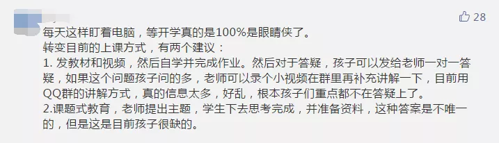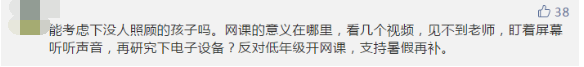此外,22%的參與者認(rèn)為,網(wǎng)課缺乏教學(xué)氛圍,無法真正實(shí)現(xiàn)互動式在線課堂。有家長認(rèn)為,目前老師用群進(jìn)行講解,聊天消息過多,信息雜亂,老師無法及時答疑,建議老師通過小視頻等形式將熱點(diǎn)問題再進(jìn)行補(bǔ)充講解。