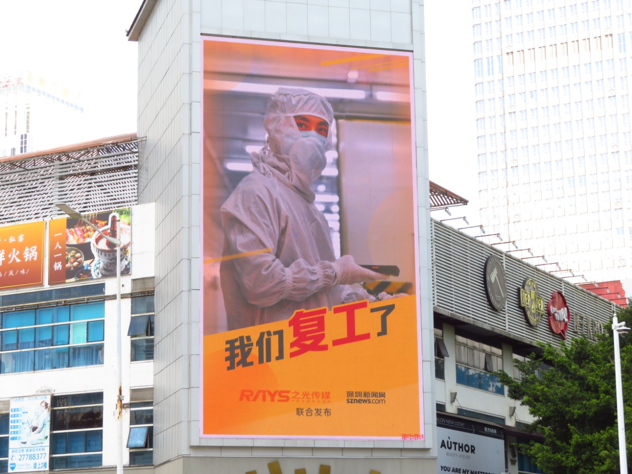 深圳點亮數(shù)十塊LED大屏 為復(fù)工的你加油
