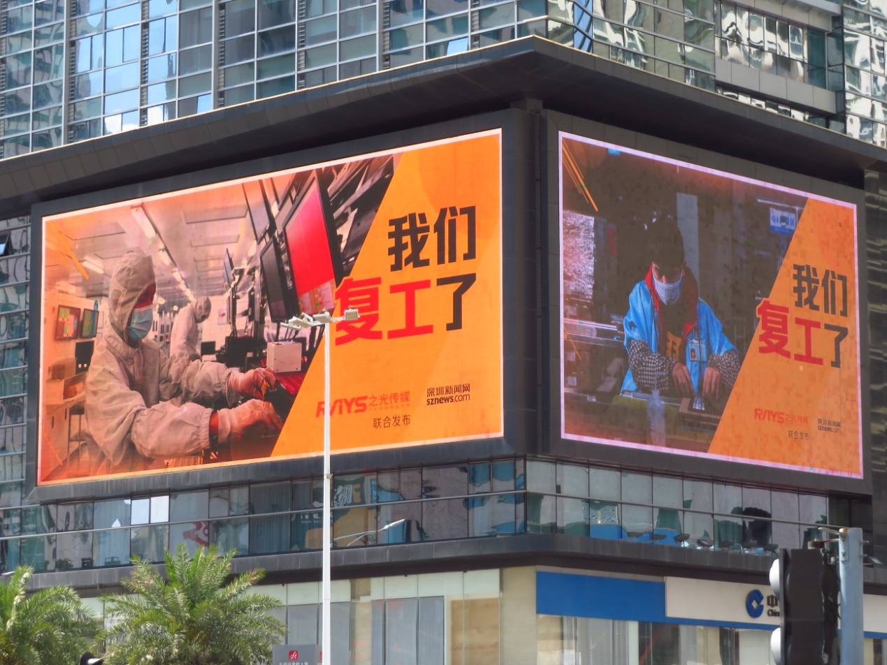 深圳點(diǎn)亮數(shù)十塊LED大屏 為復(fù)工的你加油