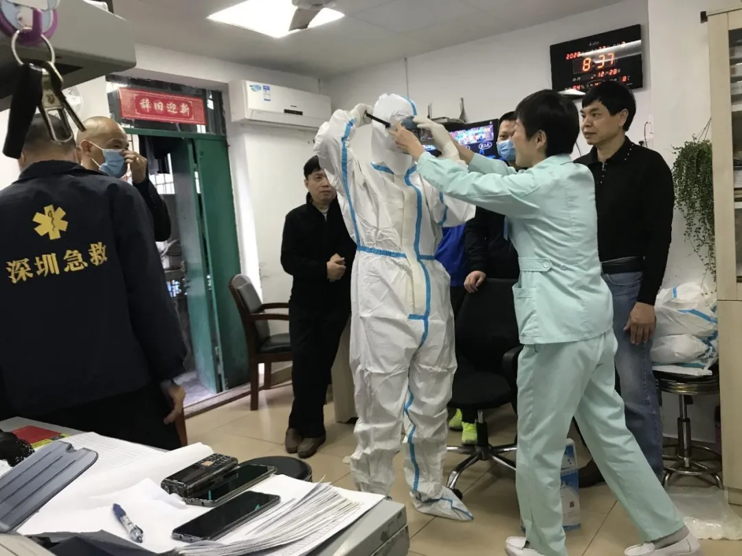 深圳市五一勞動獎章獲得者楊冬云正培訓醫(yī)護人員穿脫隔離衣。