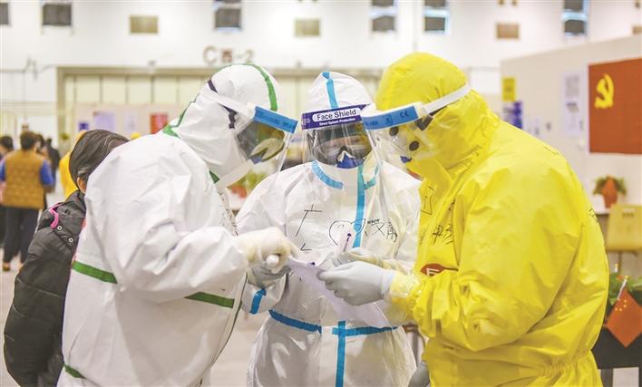 東西湖方艙醫(yī)院,深圳醫(yī)護(hù)人員與各地醫(yī)療隊(duì)員交流各項(xiàng)救治工作,為方艙醫(yī)院的醫(yī)療工作提供深圳經(jīng)驗(yàn)。