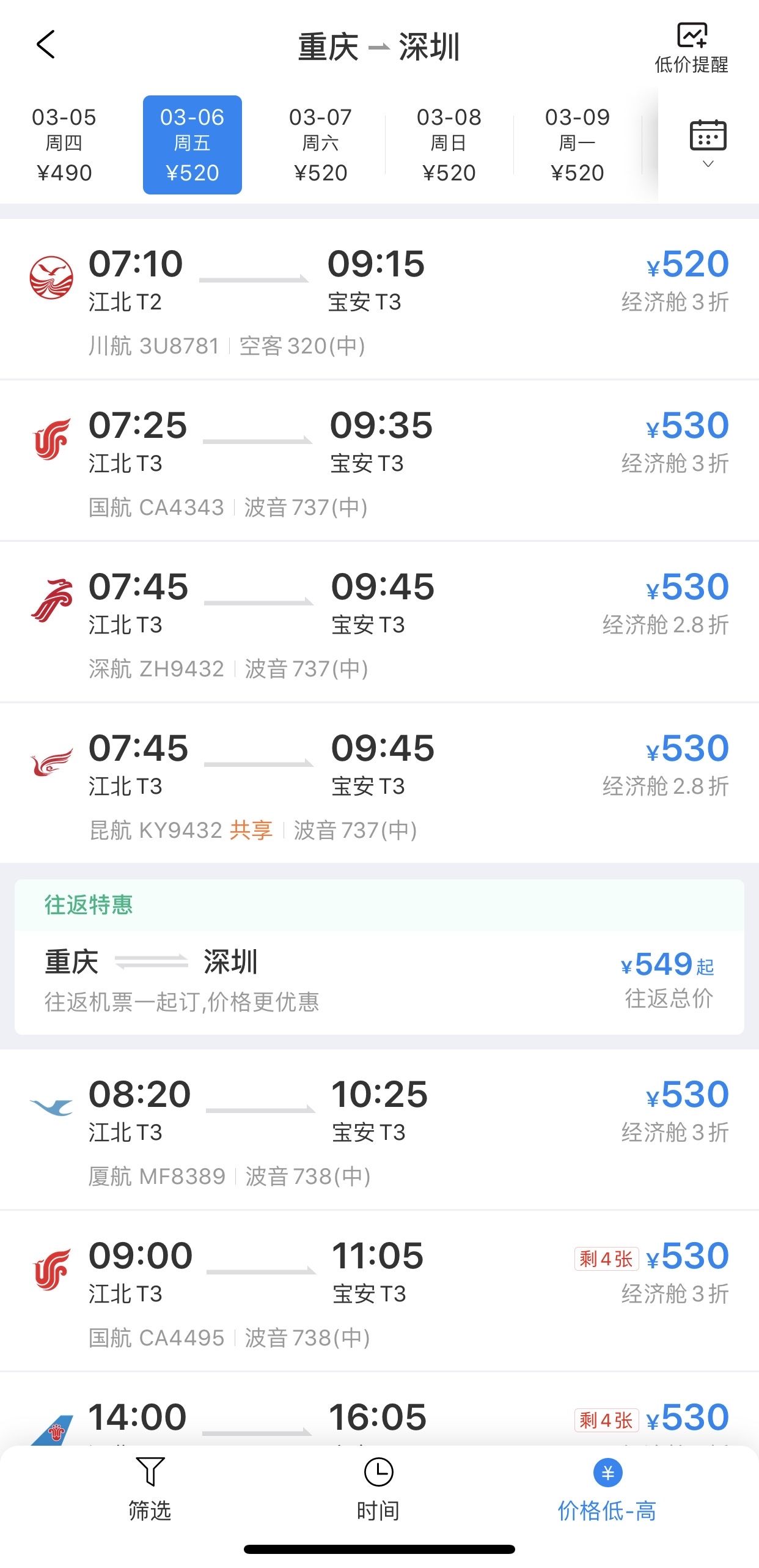 深圳特區(qū)報(bào)2020年3月6日訊 “深圳飛重慶的機(jī)票才49元!”近日,有市民在查詢機(jī)票價(jià)格時(shí),被現(xiàn)階段的超低價(jià)格震驚了。