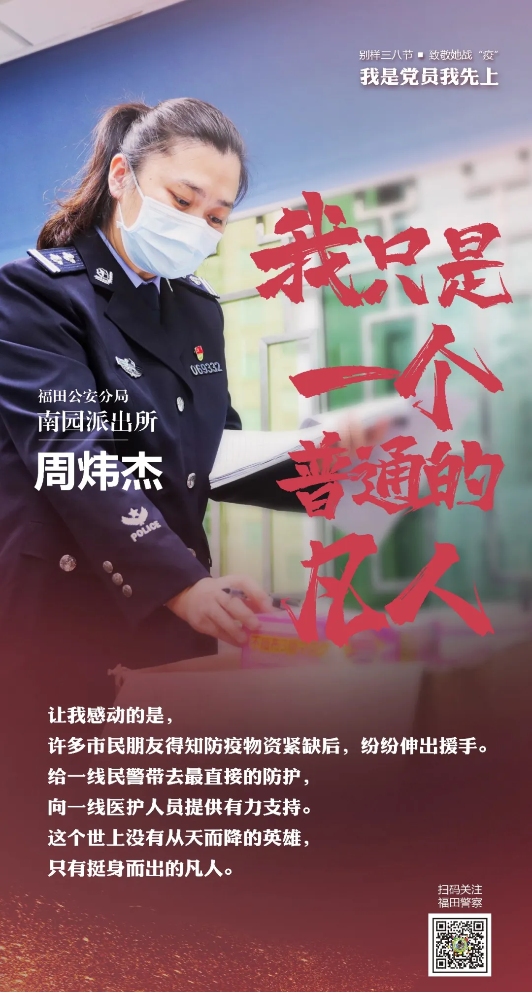 在“三八”國際勞動婦女節(jié)來臨之際,讓我們走進福田警營,聽聽這些“最美逆行者”的戰(zhàn)疫故事。