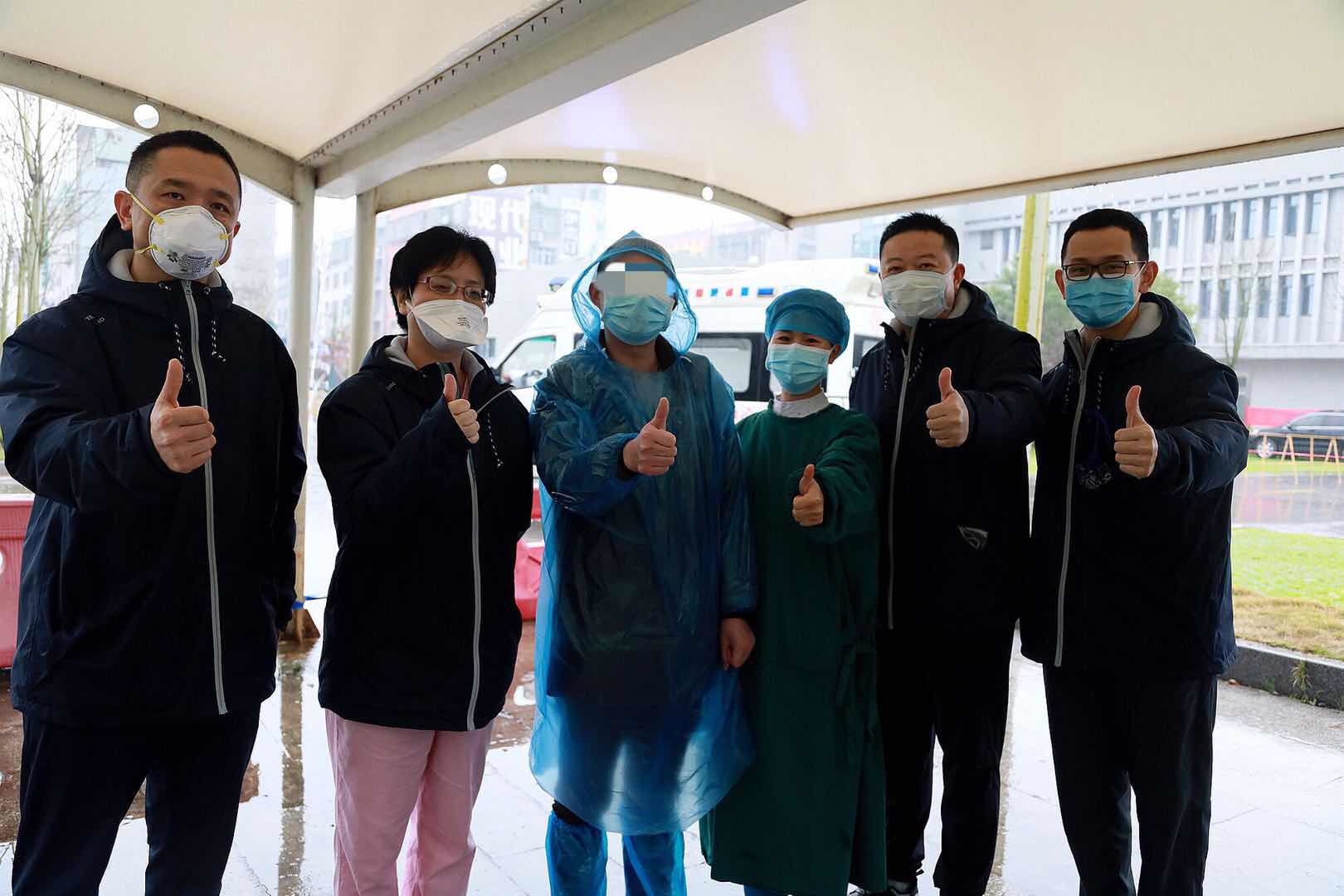 張建(中)在出院后和深圳醫(yī)療隊隊員合影留念。