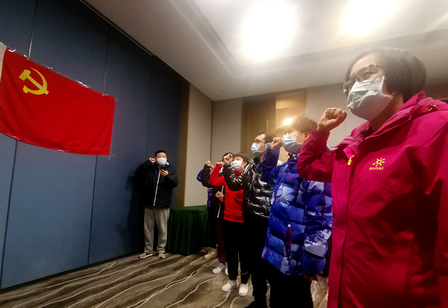 見圳客戶端·深圳新聞網(wǎng)2020年3月9日訊 3月9日晚7時30分,廣東省支援荊州醫(yī)療隊組織新黨員入黨宣誓活動。深圳邊檢總站醫(yī)療隊和北大深圳醫(yī)院醫(yī)療隊分別在荊州市第一人民醫(yī)院分會場和監(jiān)利縣廣東醫(yī)療隊駐地酒店分會場組織黨員參加了宣誓活動。經(jīng)廣東省支援荊州醫(yī)療隊臨時黨委批準(zhǔn),來自深圳邊檢總站醫(yī)院醫(yī)療隊的護士許梅與來自北大深圳醫(yī)院的護士曹慧敏、趙晨曦作為新黨員火線入黨。