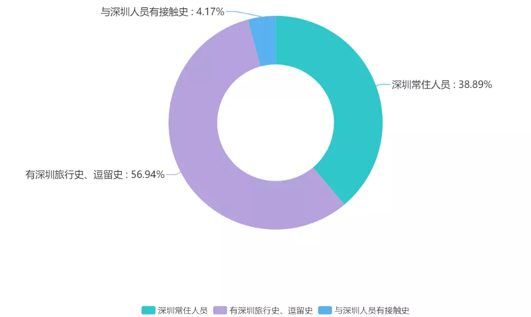 ▲深圳新冠肺炎確診病例存在聚集性特征的有223例,占總數(shù)的53.22%,超過半數(shù),可見對密切接觸者的隔離、排查是阻隔病毒傳播路徑的有效手段。