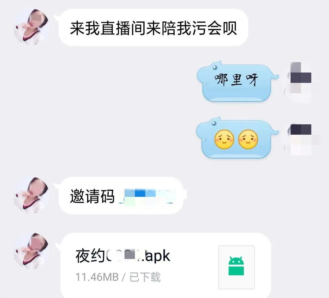美女直入正題,邀請(qǐng)陳先生安裝一款名為“夜約”的直播軟件,許諾只要在直播間點(diǎn)贊,就可以一對(duì)一視頻裸聊。