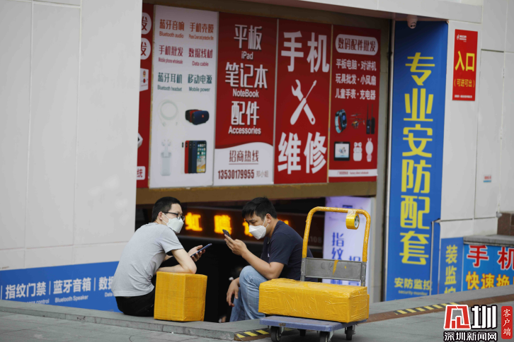 華強(qiáng)北商圈,兩位正在休息的人。