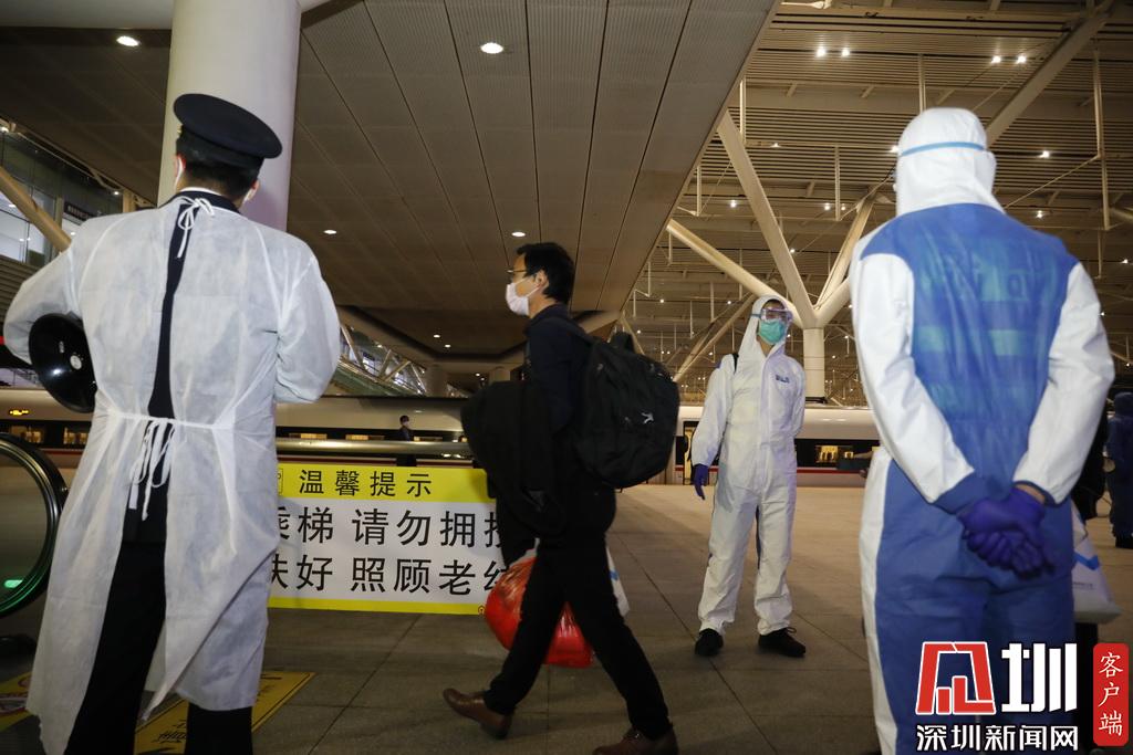 深圳北站客運車間黨總支書記龔建力告訴記者,為了確保湖北返深專列安全停靠站臺,深圳北站提前加強了清潔工作,并增派相關工作人員,確保返深湖北籍乘客有序安全出站。