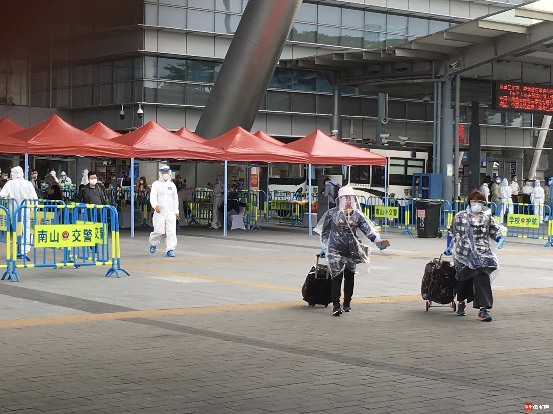 “排隊排了好幾個小時,終于出來了!”頭戴帽子、護(hù)目鏡和口罩,外加一襲透明“雨衣”的趙女士把自己包裹得嚴(yán)嚴(yán)實實,走到深圳灣口岸北廣場外才把帽子摘了,額頭微微出汗。她告訴記者,上午10點鐘她從香港出境,直到下午2點才通關(guān)。香港居民鐘先生是一名大學(xué)生,因老家有事才入境,他比趙女士要幸運一些,從11點開始通關(guān)的他花了2個多小時。