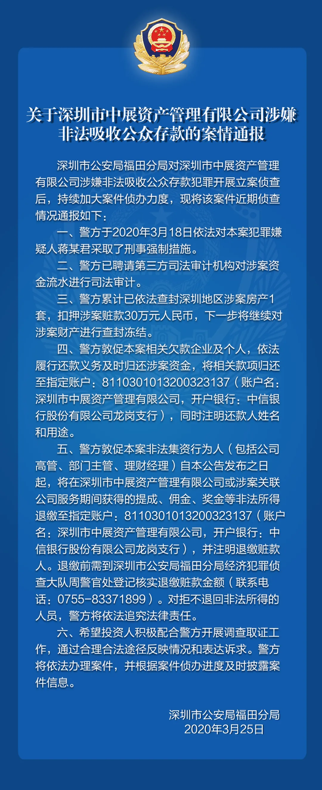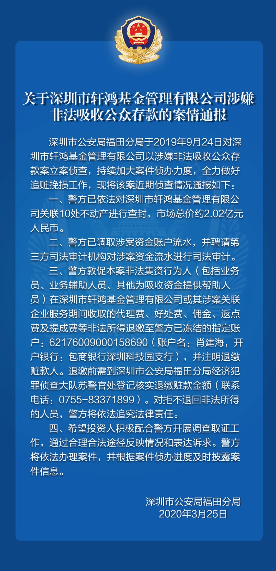關于深圳市軒鴻基金管理有限公司、深圳市中展資產管理有限公司涉嫌非法吸收公眾存款的案件情況通報