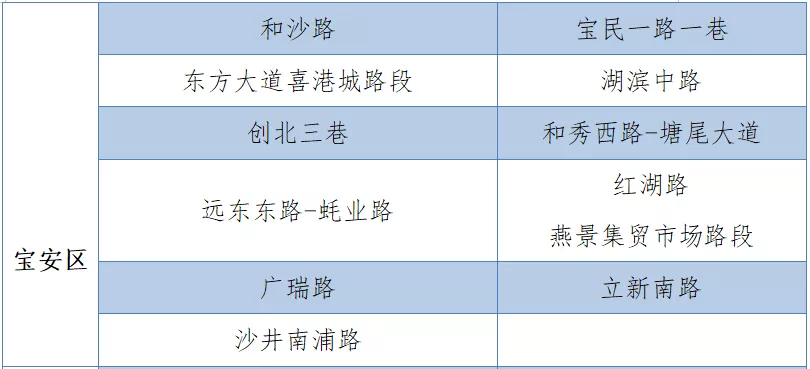 具體設置路段請看表格