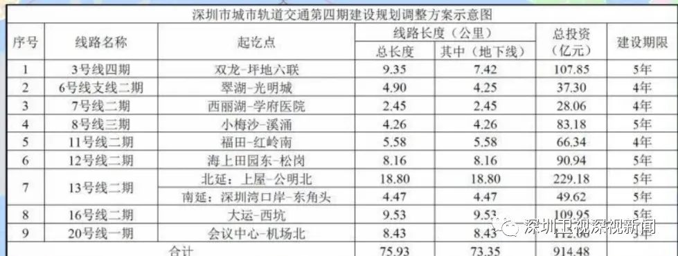 16號線二期工程自大運站至西坑站,線路長度9.53公里,為地下線,采用A型車6輛編組;總投資109.95億元,建設工期5年。