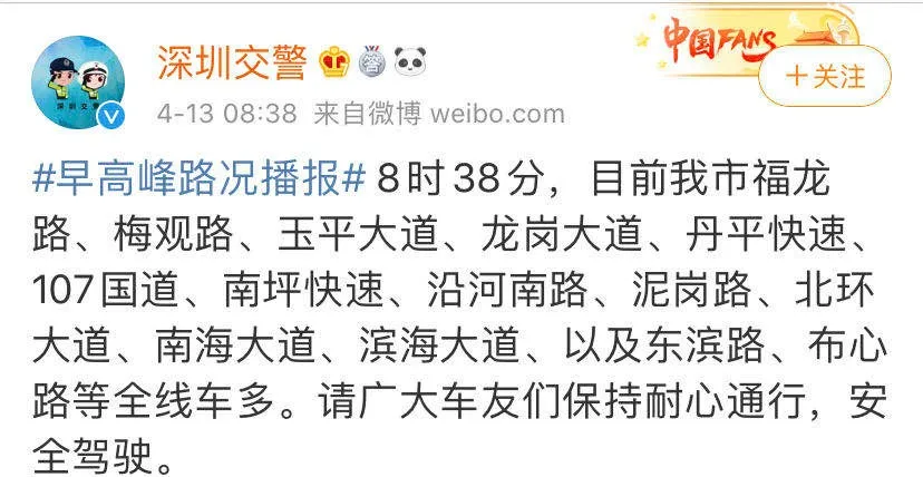 而今早,深圳交警也發(fā)布微博稱早高峰期間,我市多個路段全線車多,具體路段見下圖↓↓↓