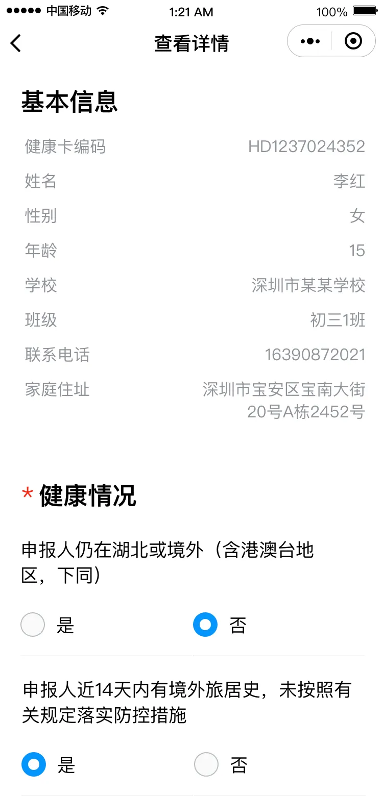 若不符合返校條件,需在符合條件后,點(diǎn)擊“重新生成健康卡”再次申報(bào)。